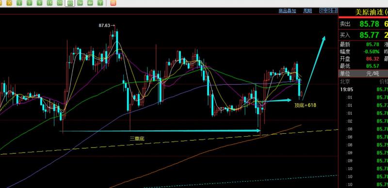 第三,原油方面:昨日84.6判断出三重底支撑逢低继续看涨,最终今日拉高至86.6,也有不错的利润空间;