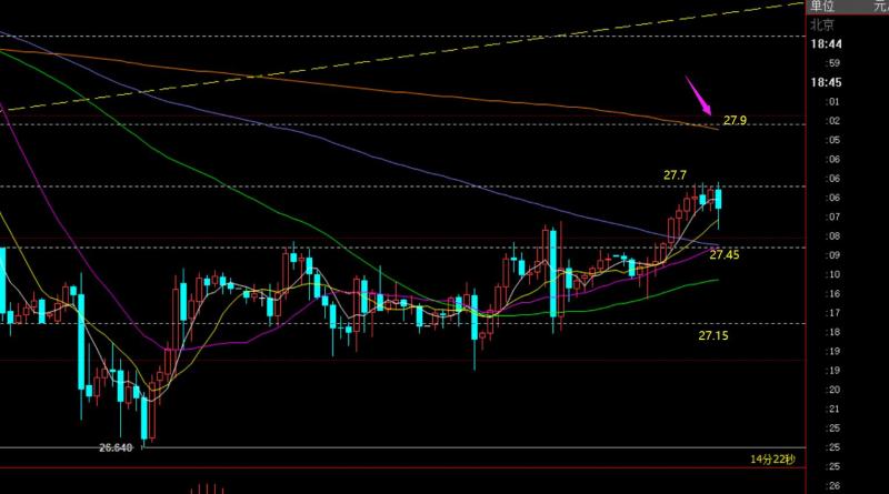 第二,白银方面:这几天它就关注两个压力,一个27.45一线,一个是27.75一线,昨日承压27.45跌至27.12一线;
