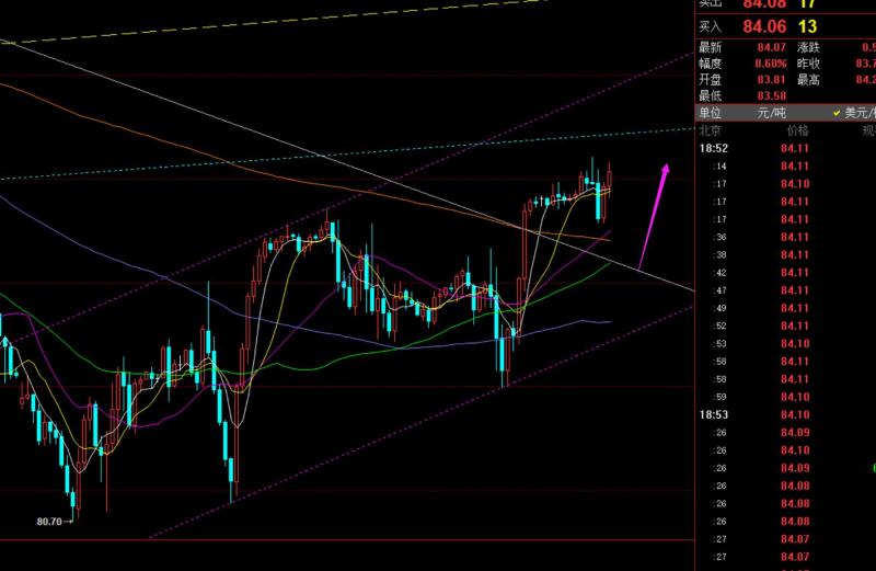 第三,原油方面: 昨日白盘先依托小时线66日均线,以隔夜低点作为防守,直接去看涨一波,但涨的有些吃力,提前调仓;美盘计划81.7多,价格最低只触及81.9,差一点,然后半夜就是持续拉升200点;