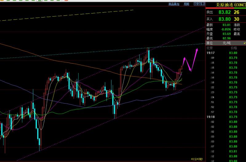 第三,原油方面:价格未触及83.2做多点,但今日给到了,也成功拉升了;