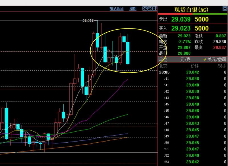 第二,白银方面:昨日美盘也是预判下探后拉升,关注30通道下轨支撑,首次触及后,的确反抽了一波,但后半夜再下滑就守不住了;