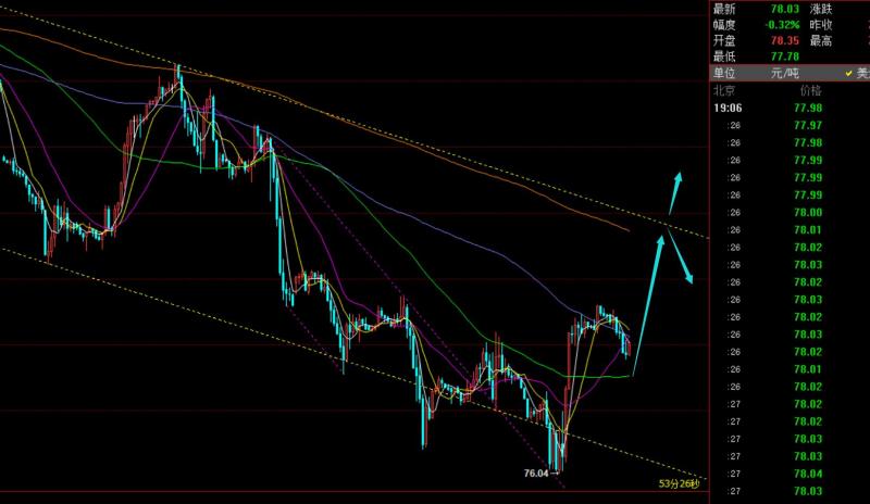 第三,原油方面:昨日指出76上看涨反弹,依旧认为严重底背离状态下,会迎来一波超跌反弹,最终成功拉高至78.5一线;