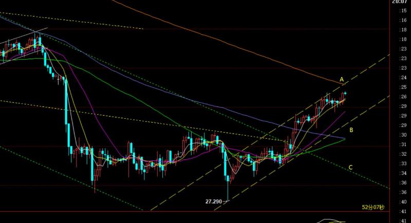 第二,白银方面: 研报指出压力是28.1一线,通道上轨,当时价格28一线去选择短线看跌承压,跌至27.75一线,也是有所利润把握;