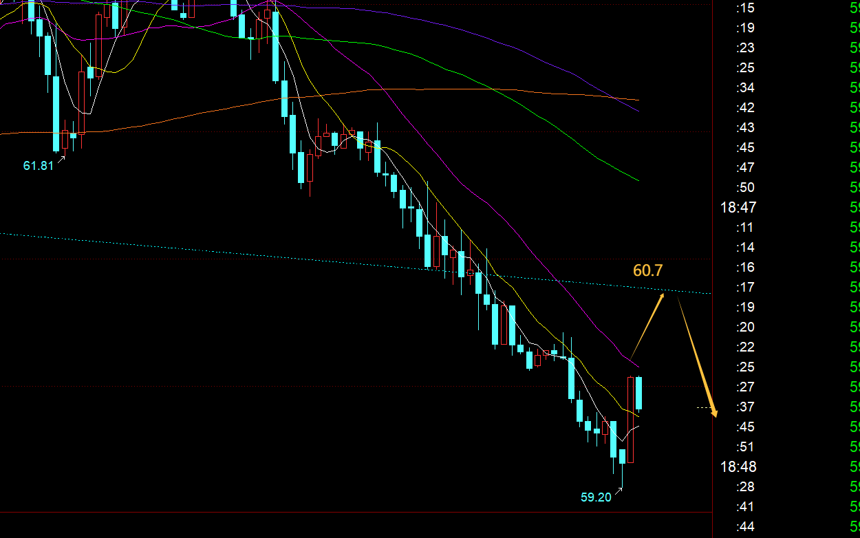 原油方面:今晚关注60.7,日线5均线61.5阻力,逢高延续看跌,支撑57.8;