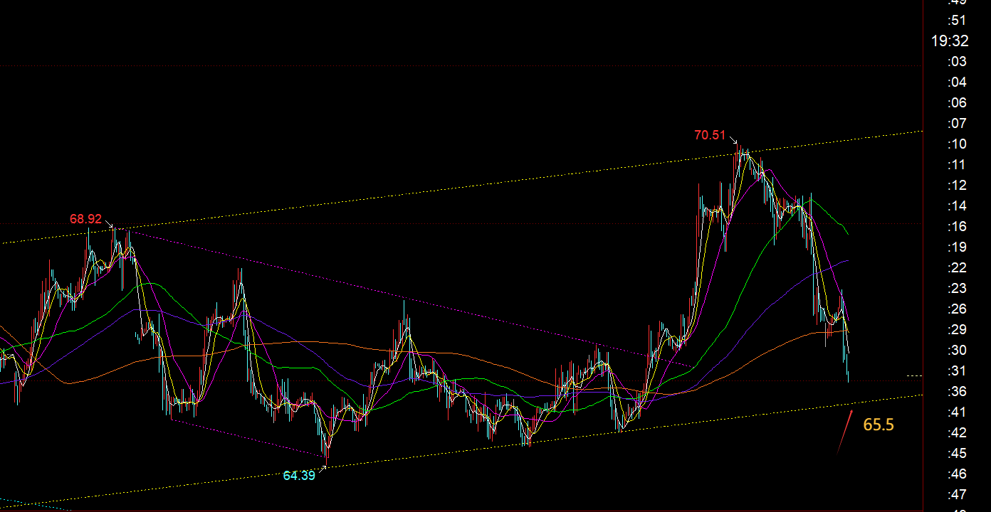 第三,原油方面:上周五研报指出,短期存在回落下跌,因为多次压制69.5,且失守小时线66日均线支撑,一旦破位68.4则指向67,最终符合预判,刚好最低抵达67;