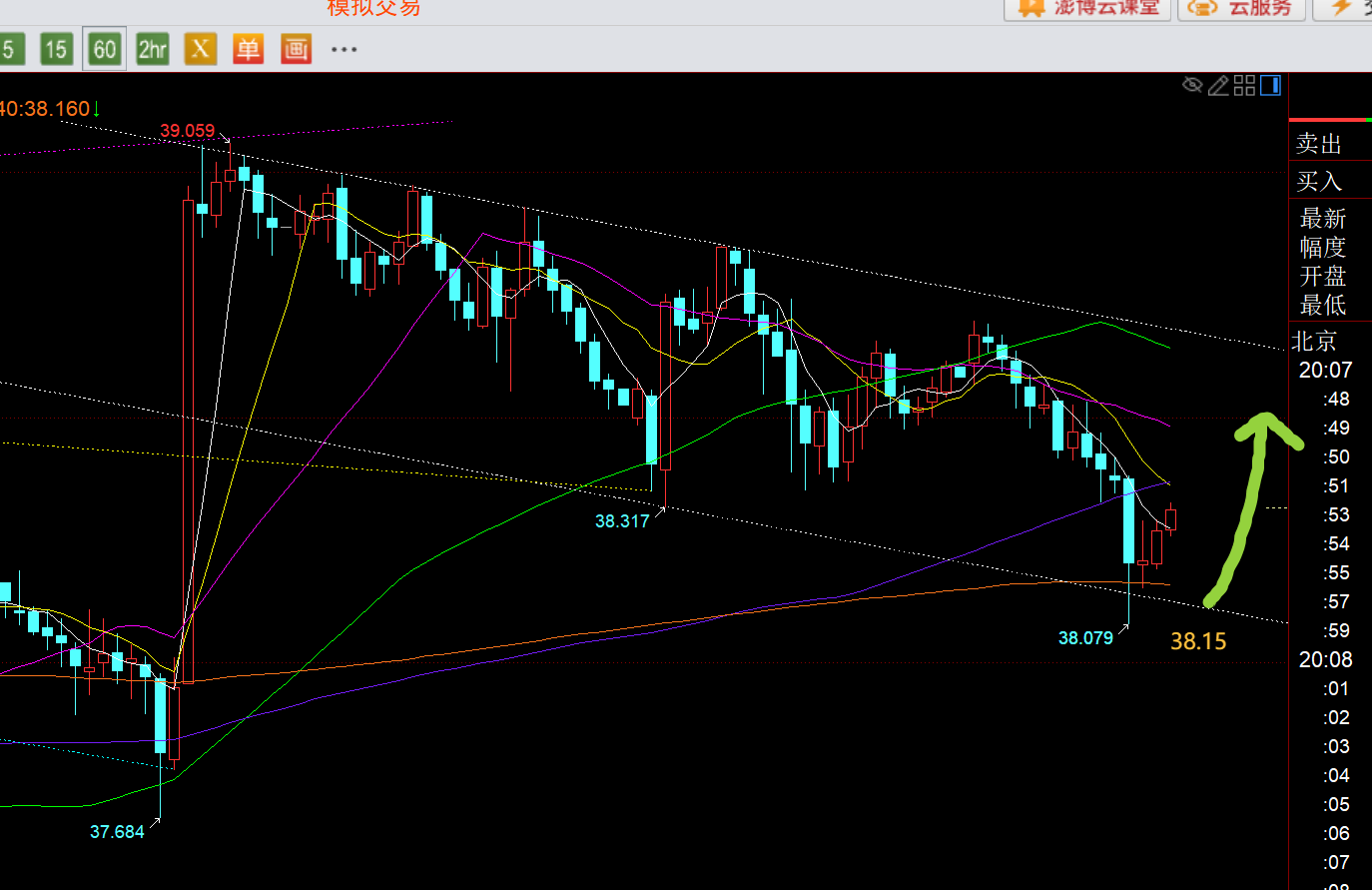 白银方面:白银依旧比黄金弱,原本今日计划回踩38.2一线,也是日线10均线处企稳看涨;但考虑到欧盘一路下跌,且破了昨日低点,那么担心美盘前拉升,美盘后还有二次打压,先暂时观察等待;当然,也不排除38.08打出的低点可能是急跌刺破,可等21点至22点,若二次打压仍守住38.15位置,则可以去低位看涨,或者并未出现二次打压,直接连阳上行,22点后找回测去跟随看涨,以日内低点作为风水岭防守,阻力目标38.65-38.7短期通道上轨,突破站上才能进一步延续至39上方;