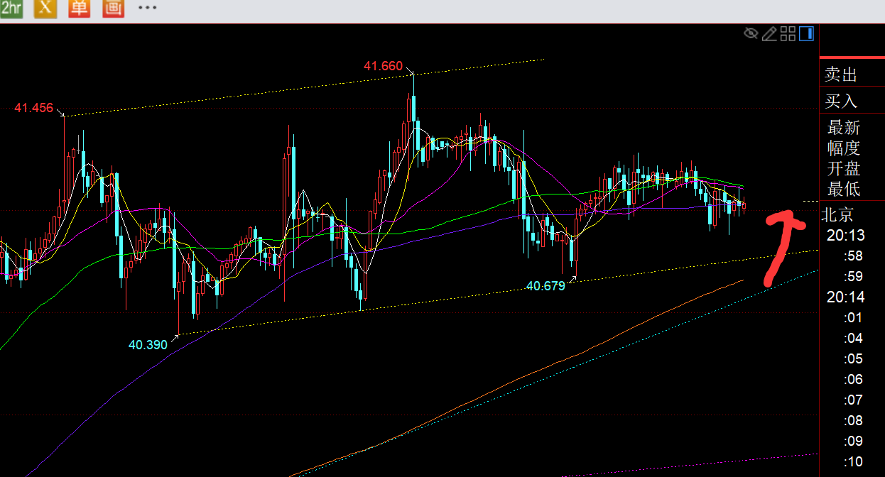 第二,白银方面:昨日40.6上看涨,也是略差一点,同样踏空一波拉升;