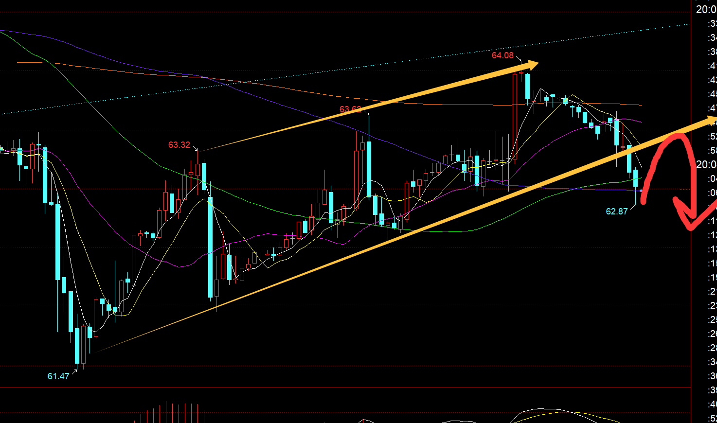 原油方面:昨日提及震荡反弹后,留意64一线承压下滑,目前来看是符合的;今日下破图中通道下轨,今晚反弹还是留意压制情况,63.5之下;