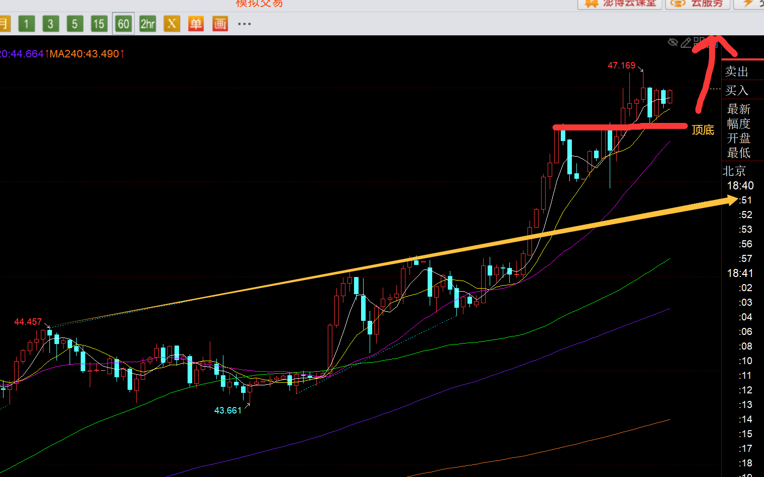 第二,白银方面:上周五指出44.8上看涨,当日大幅拉升破46关口,底仓也就要坚持拿住,去看更高的位置,今日果然也是强势进一步上冲,破了47关口,才短短两日,底仓就基本已有100米利润;