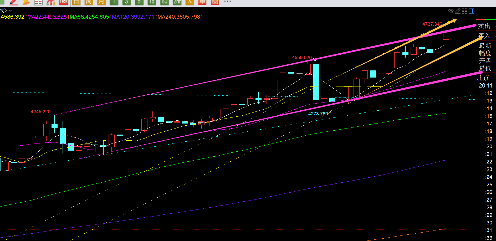 第一,黄金方面:昨日早间仍支撑稳定于4660上周横盘区间上轨,因此4660上继续北上,最终成功抵达4690-4700;而由于黄金日线级别走势规律从10月份开始后,都是台阶式的偏震荡上攻,大阳突破之后紧跟着是几日的高位横盘再大阳突破再横盘,因此前日大阳突破,昨日就原本以高位某一个箱体震荡区间来酝酿的,先指出日线通道上轨4718下阻力,但日内仅回踩了4705再次拉升,美盘两次承压4750下冲高回落,且当时短周期macd背离严重,以为震荡区间会开始,结果后半夜慢慢走高,收盘于日内高位,今日早间继续发力上攻,那么日线就具备了强势连阳单边的迹象;