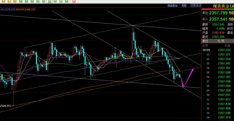 郑氏点银:黄金成功延续弱势修正下行,今夜利率公布还有一跌 先祝各位五一假期愉快! 回顾昨日行情走势及出现的技术点: 第一,黄金方面:昨日一早黄金承压2336进行续跌,且10点前后并未出现前几日的企稳循环过山车拉升迹象,而是继续收阴,连阴慢跌格局展开了,这就