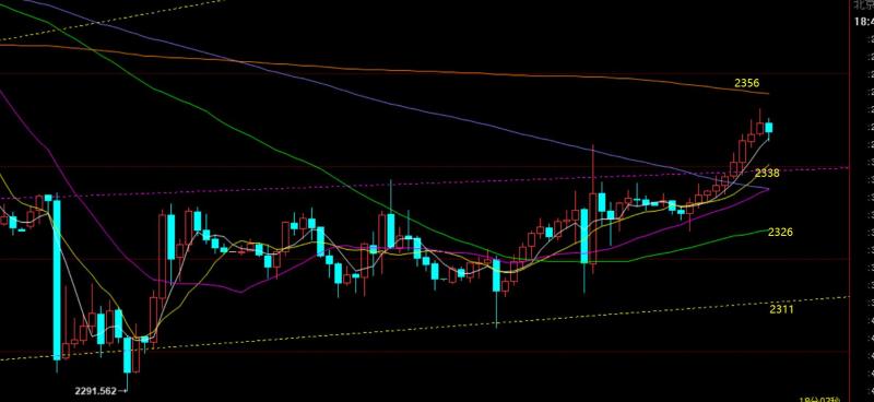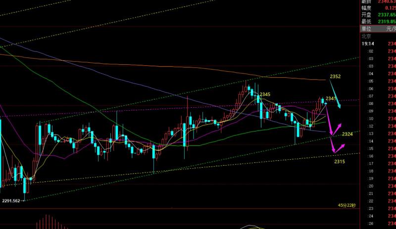 郑氏点银:黄金冲破2338,测试日线10均线最后关口,油续涨 回顾昨日行情走势及出现的技术点: 第一,黄金方面:昨日仍以2330-2338区域作为过山车震荡上轨压力,反复拉高看跌,第一次触及2330及上空,跌至2313拿下一波;第二波触及2332再空,跌至2322-23再拿下一波;第三次半夜再反复2331