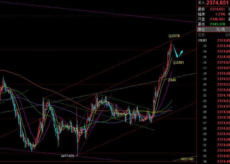 郑氏点银:黄金调整至2147仍看涨,原油81上看涨 回顾上周五行情走势及出现的技术点: 第一,黄金方面:上周五黄金相当的刺激,早间先出现一波大幅急拉,盘中给出2373多,很快抵达2414,拿下40美金;而一般早间出现大幅急拉,就要谨防它是烟雾弹,之前类似走势出现过几次,因而并不急于去