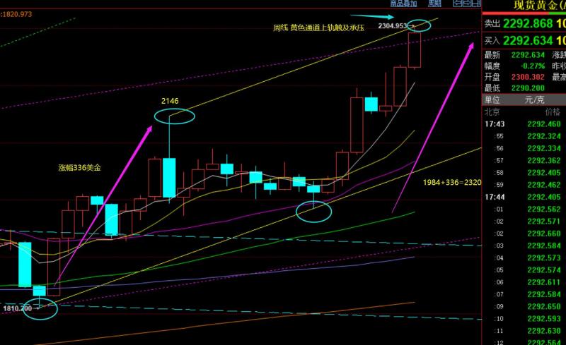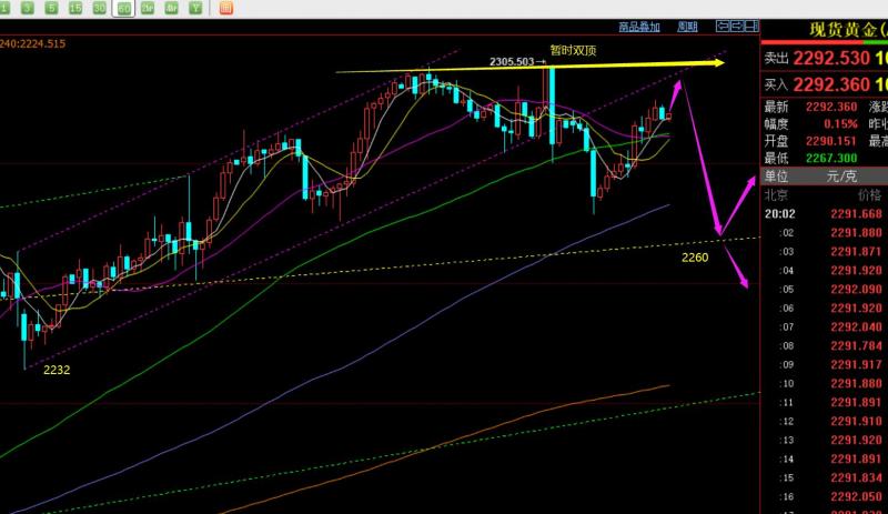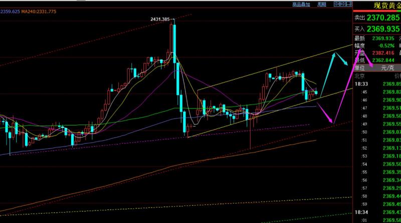 郑氏点银:黄金2300上方谨防突袭调整,原油也有回调需求 回顾昨日行情走势及出现的技术点: 第一,黄金方面:昨日黄金早间强势横盘运行于短周期通道上轨2280之上,则先以2276一早的低点作为风水岭防守,尝试直接强势逼空延续看破高拉升;但最终还是走了前日的走势循环,欧盘破位2
