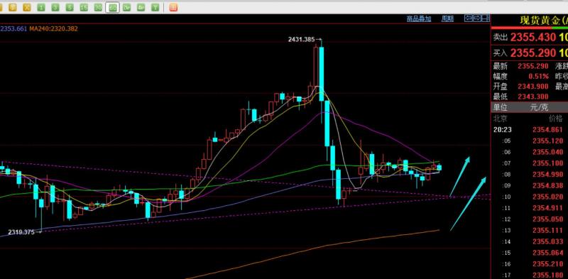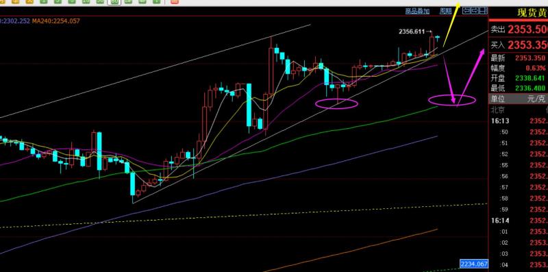 郑氏点银:黄金2319上继续单边看涨,原油修正结束继续走高 回顾昨日行情走势及出现的技术点: 第一,黄金方面:昨日早间依托日线5均线2305-2300支撑企稳后继续强势走高,刷新2353.8一线历史高点;欧盘同样上循环震荡慢回测而未走强,则美盘自然是看探底拉升,半夜也是循环强势拉