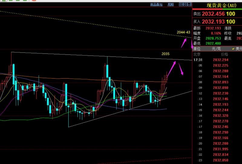 郑氏点银:美元若失守103关口或助推金价拉升,原油继续看涨 回顾昨日行情走势及出现的技术点: 第一,黄金方面:昨日亚盘出现急速连阳走高,突破2032前一日高点,有所打破前两日的震荡慢下滑通道,但很快欧盘冲高回落,打回原点,这说明金价仍处于无厘头震荡扫荡之中; 第二,白银方面