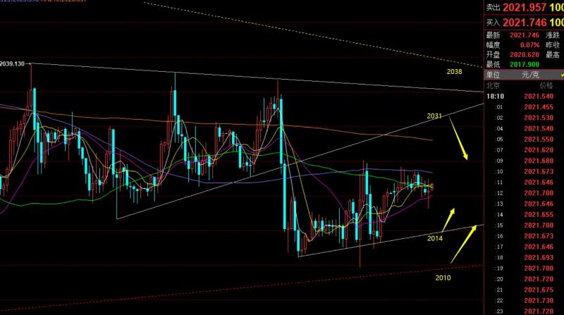 郑氏点银:黄金2011上仍处于震荡,原油阶梯式继续看涨 回顾昨日行情走势及出现的技术点: 第一,黄金方面:昨日先依托趋势线支撑2022上震荡看涨,最终抵达2035-36,而2036一线是研报提及的趋势阻力位,承压可看回落,只是没想到的是借助一个数据打压力度比预期偏大,短暂走出了前两日的2016-2040