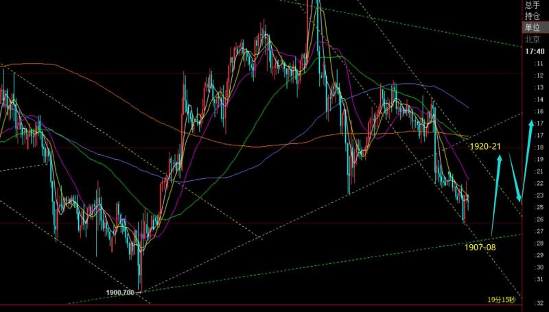 郑氏点银:黄金日内留意1878风水岭,原油逼空结束转高位震荡 回顾昨日行情走势及出现的技术点: 第一,黄金方面:昨日早盘原计划1905看阻力压制,因为隔夜破位走弱,早间先反弹则容易继续压制下行,但无奈价格只给到1904一线就下滑了,而下方支撑留意的是1895一线,日线年均线;但明显欧盘仍