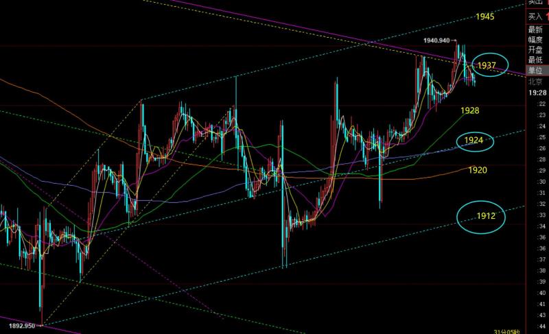 郑氏点银:今晚CI预判小幅走高,黄金原油则先跌后涨 回顾昨日行情走势及出现的技术点: 第一,黄金方面:昨日亚盘直接震荡走高,欧盘前加速一波拉升,抵达1938目标,隔夜1920多单也就全数拿下;原本计划1938承压看跌,再拉低企稳继续多,但见多次试探1936-38力度看戏有些强,最终并未反手