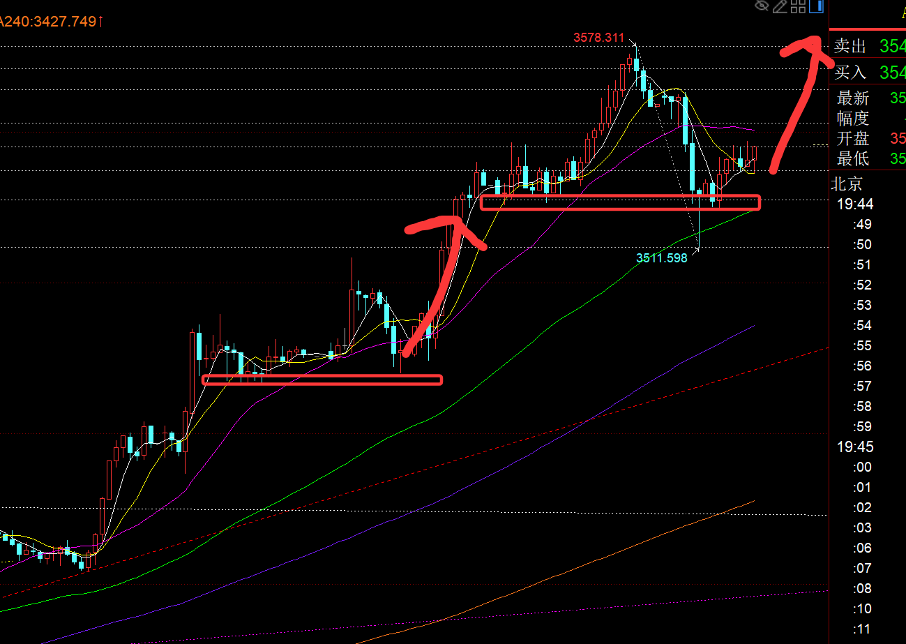 郑氏点银:黄金昨日3575到位,今日跳水调整是好事,继续看涨 回顾昨日行情走势及出现的技术点: 第一,黄金方面:昨日早间3521之上计划直接看涨,博续涨,最低3525,位置上略差几美金;而欧盘持续窄幅横盘,计划是等靠近小时线中轨企稳,稳定再继续看涨,等了半天一直触及不到中轨,美盘前连