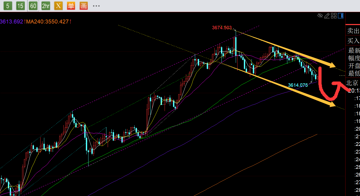 郑氏点银:黄金日内失守日线5均线,下调至3593等待企稳信号 回顾昨日行情走势及出现的技术点: 第一,黄金方面:昨日踏空两波,看戏了一日;早间计划3616上看涨,最低只给到3620,然后一路连阳慢涨拉升至3640的上方;欧美盘一直等3630上继续看涨,半夜最低才给到3635,又是差四五米距离,拉升