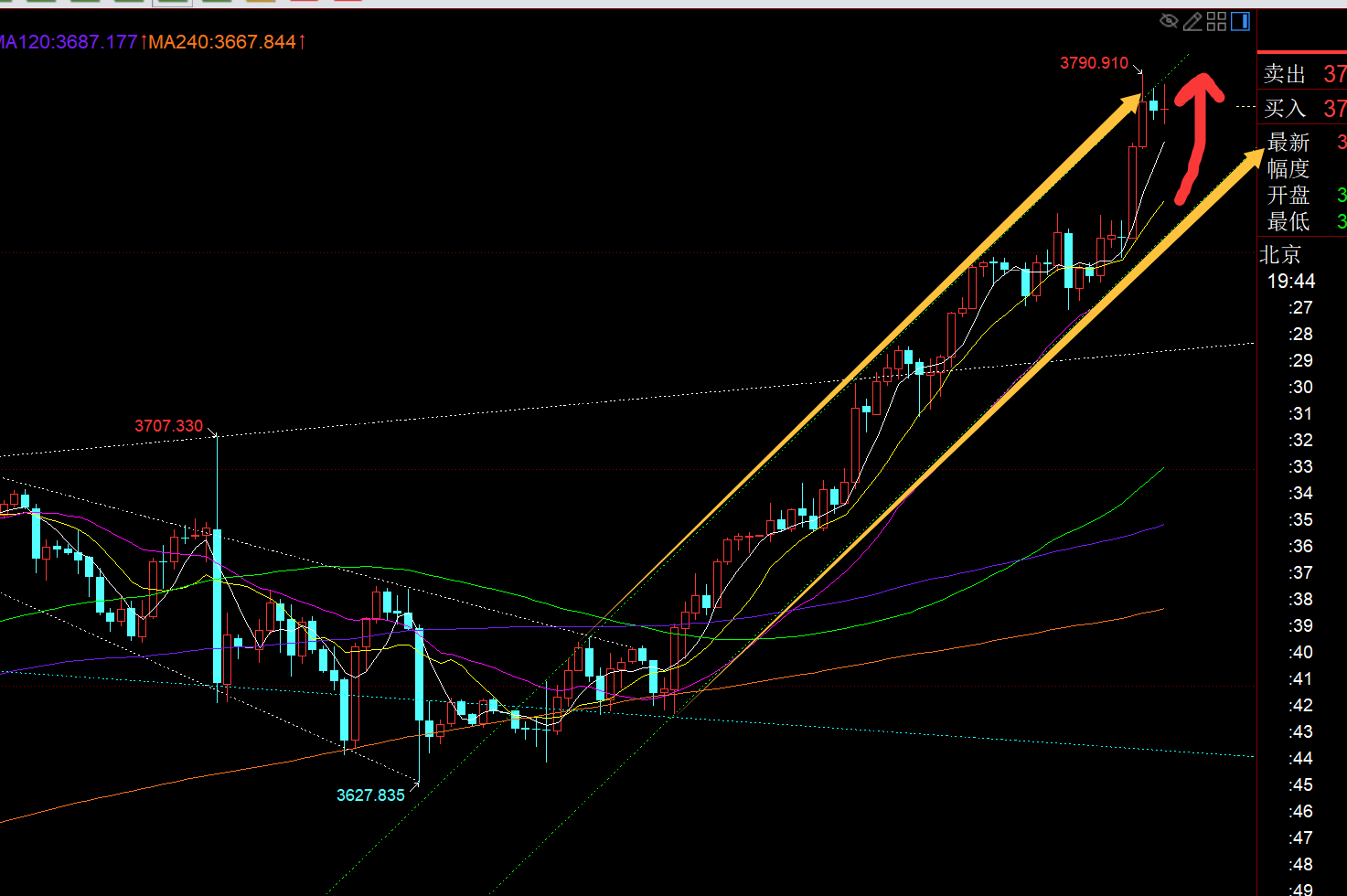 郑氏点银:今日黄金欧盘强势站上3760,今晚继续二次看涨 回顾昨日行情走势及出现的技术点: 第一,黄金方面:昨日黄金早间触及3685直接横盘企稳,午后强势上破发力,计划给出的3680、3690、3700都未给到回踩跟随看涨机会;欧盘延续强势上拉,美盘则强调继续二次看涨,提出382分割支撑3712看涨,刚好触