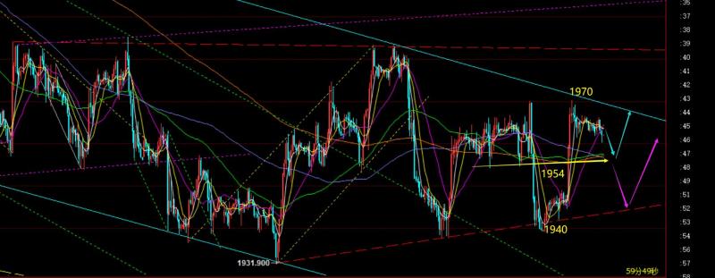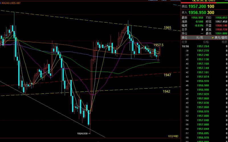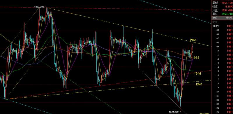 郑氏点银:黄金留意1964下承压仍震荡,原油71下先看跌 回顾昨日行情走势及出现的技术点: 第一,黄金方面:昨日亚盘直接弱势续跌一波,从1945跳水至1930,欧盘压制1940顶底位置震荡式慢下行,最低触及1925一线后,美盘迎来大反攻,一路冲到1960,可谓是多空大幅度扫荡,也说明短期内还处