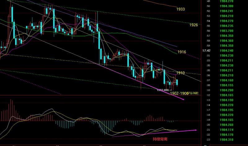 郑氏点银:黄金测试1900市场心理关口,原油继续看反弹 回顾昨日行情走势及出现的技术点 第一,黄金方面:本周二和周三整体走势还是比预期偏弱些,因为本周指出的短线做空压力位始终无法试探,周二指出1943上下压制反手空,周三指出1923上下压制空,反弹力度都相对弱,都给不到;而预期的回踩支撑