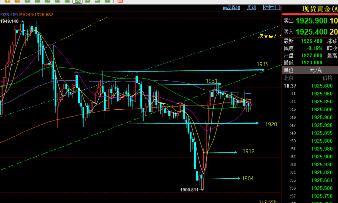 郑氏点银:黄金又开始一轮震荡背离逼空,原油逐步打压 回顾昨日行情走势及出现的技术点: 第一,黄金方面:这两天错失了不少利润,周二计划1896日线中轨去反手多,结果只给到1900提提前拉升了;昨日计划1912上逢低多,但也没下去,只给到1920;美盘初计划1934短空,却只给到1933就打到192