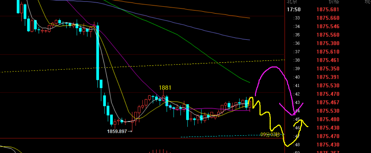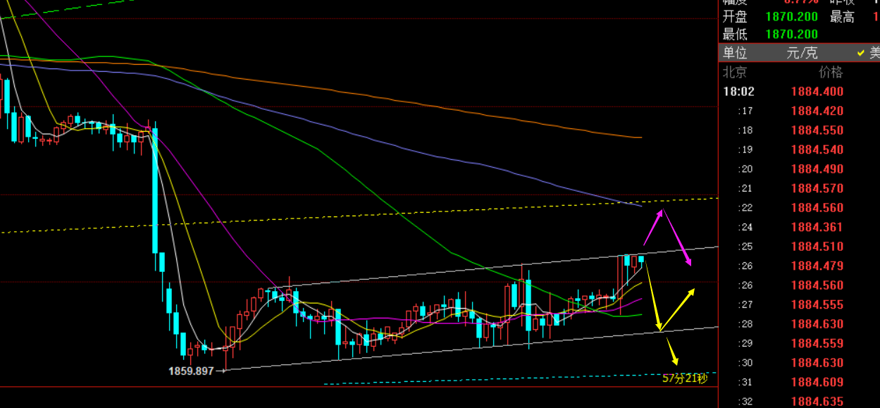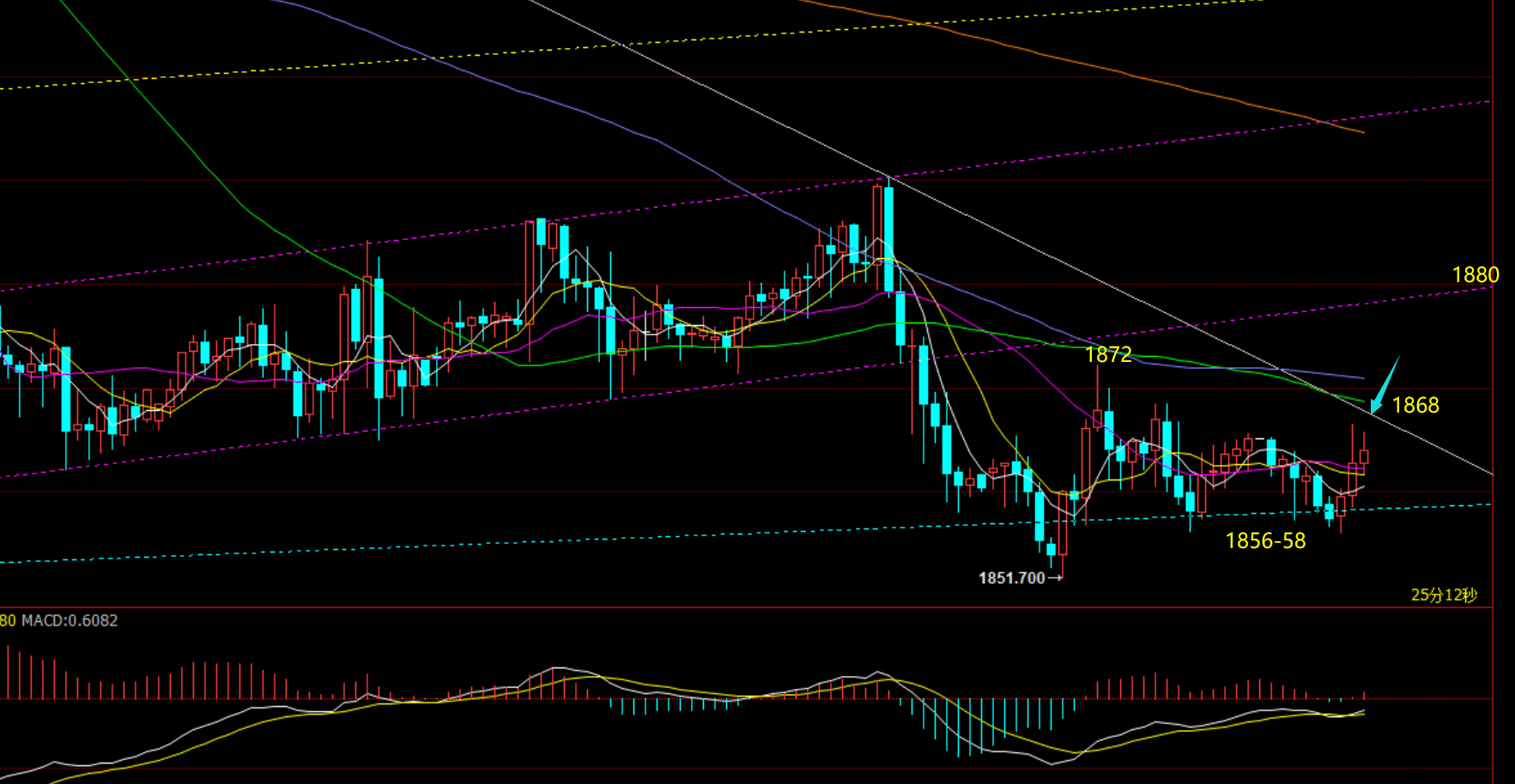 郑氏点银:黄金底部反复拉高回落,原油走高仍宽幅整理 回顾昨日行情走势及出现的技术点: 第一,黄金方面:昨日走势基本周一类似的震荡,亚盘震荡反弹一波,欧盘承压,美盘探底拉升,半夜再打压回去;日线又一次收报长上影K,日内安排两次短空都有盈利拿下,两次都给到1865一线,后半夜讲话未去参