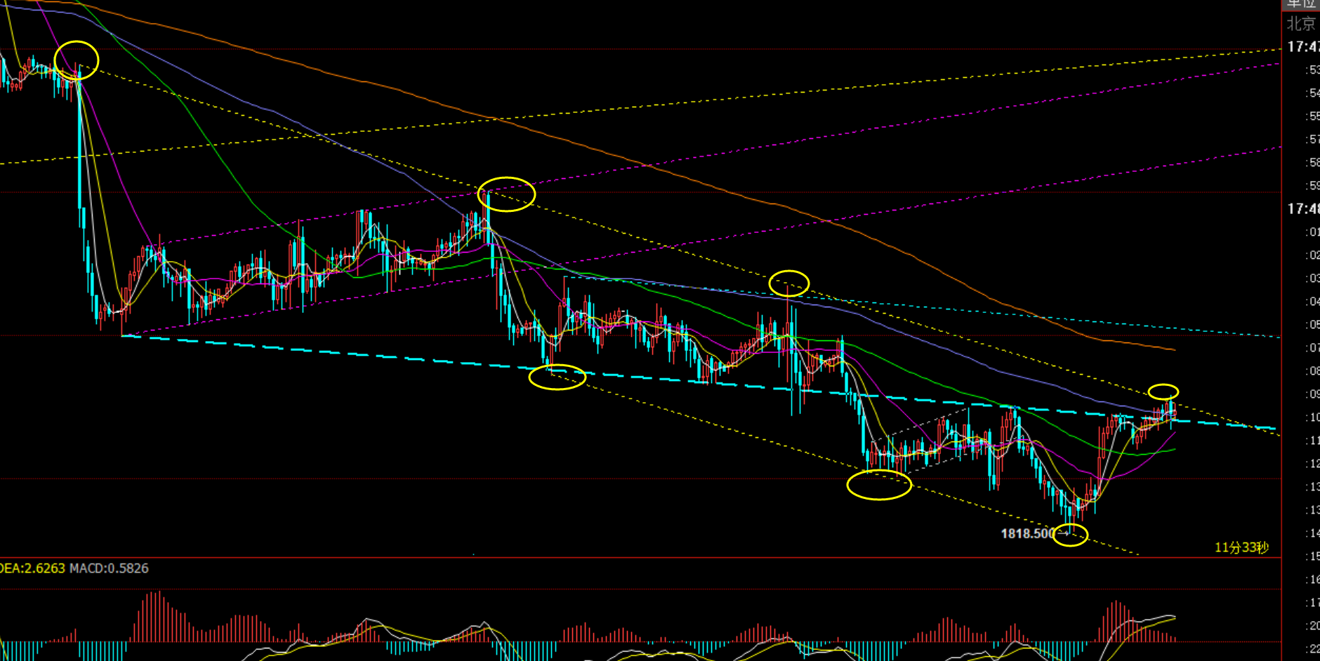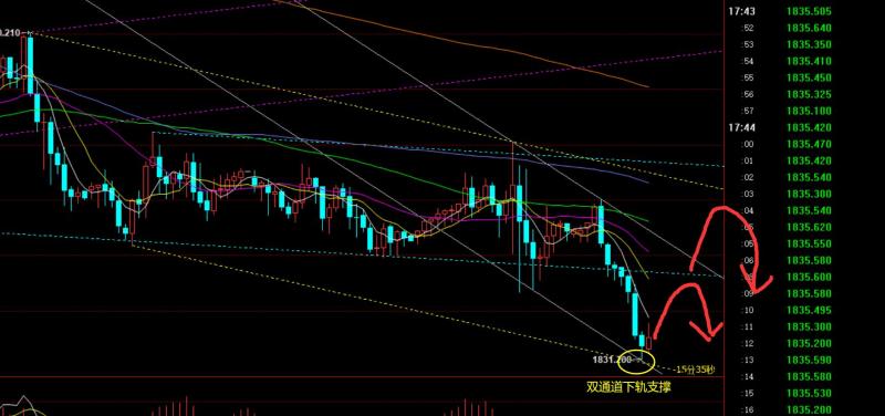 郑氏点银:黄金日线阴阳切换持续走弱,原油交割抛售规律 回顾昨日行情走势及出现的技术点: 第一,黄金方面:周三隔夜是弱势破位下跌,而昨日早间并未先续跌,而先反弹,那么这种走势一旦出现,午后或欧盘要敢于继续跟空,阻力点则是通道反压点1845一线,短期出承压信号后安排1843空,一波到位183