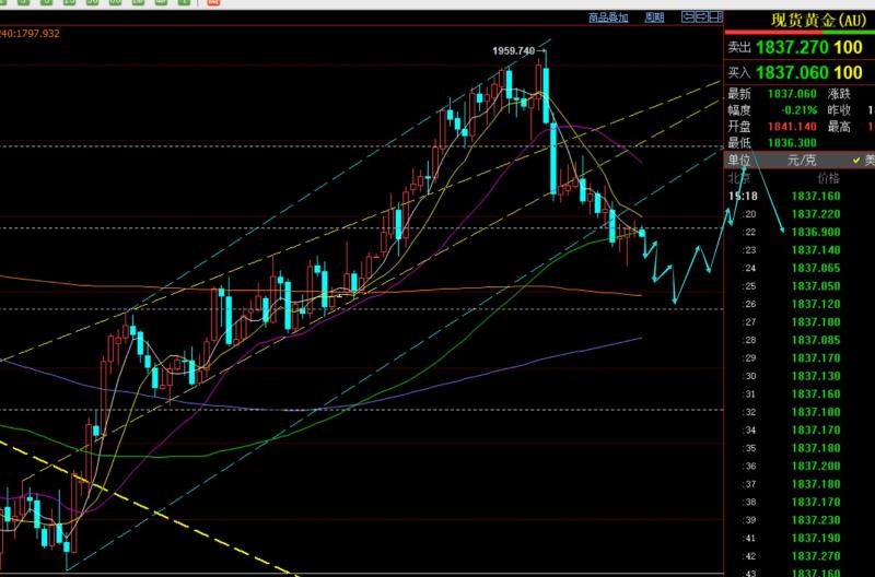 郑氏点银:黄金反弹只是修正,不改变短期回调下行 回顾上周五行情走势及出现的技术点: 第一,黄金方面:上周五早盘计划反弹1842继续看空,但价格直接连阴续跌走弱,丝毫不给反抽空机会,有阴跌至1818.5低点;盘中指出1818存在一定通道下轨支撑,因此美盘前1821测试短多,顺利震荡反弹至1830拿下