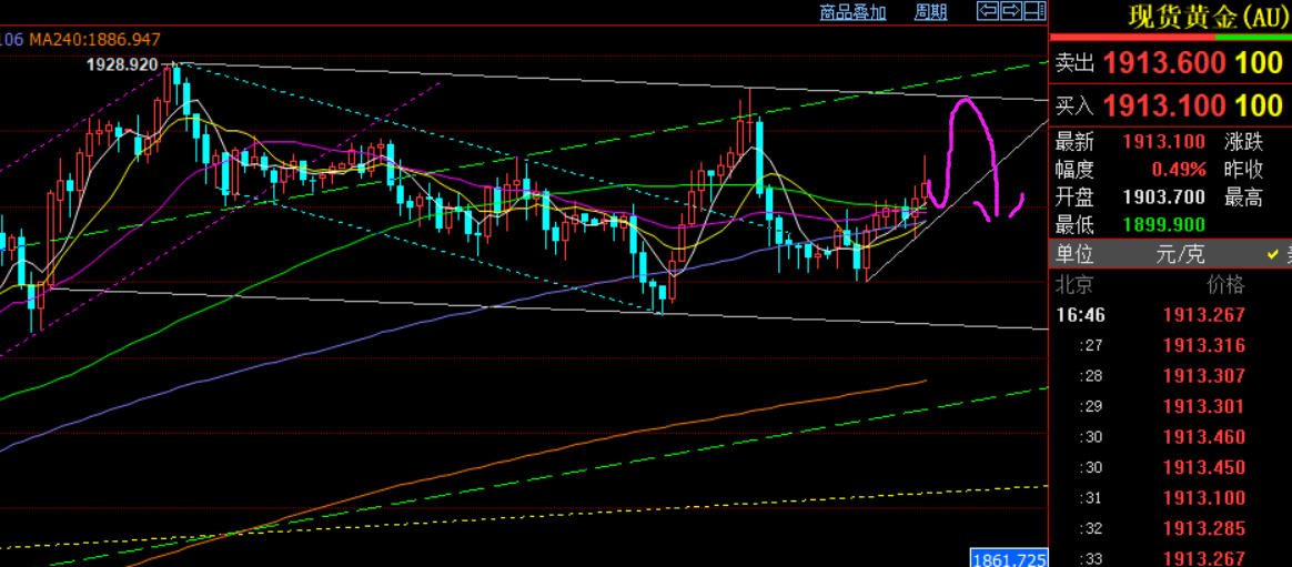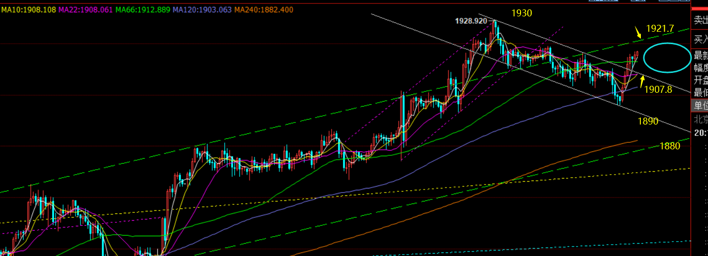 郑氏点银:黄金考验1900一线支撑,短期或开始酝酿顶部结构 回顾昨日行情走势及出现的技术点: 第一,黄金方面:早盘依托凌晨横盘支撑直接强势续涨一波至1928.6一线,差一点击破1930中期防守,好在午后连跌回落失守早间起涨点1916,则意味着欧盘还有进一步回测空间,指向双通道共振点1
