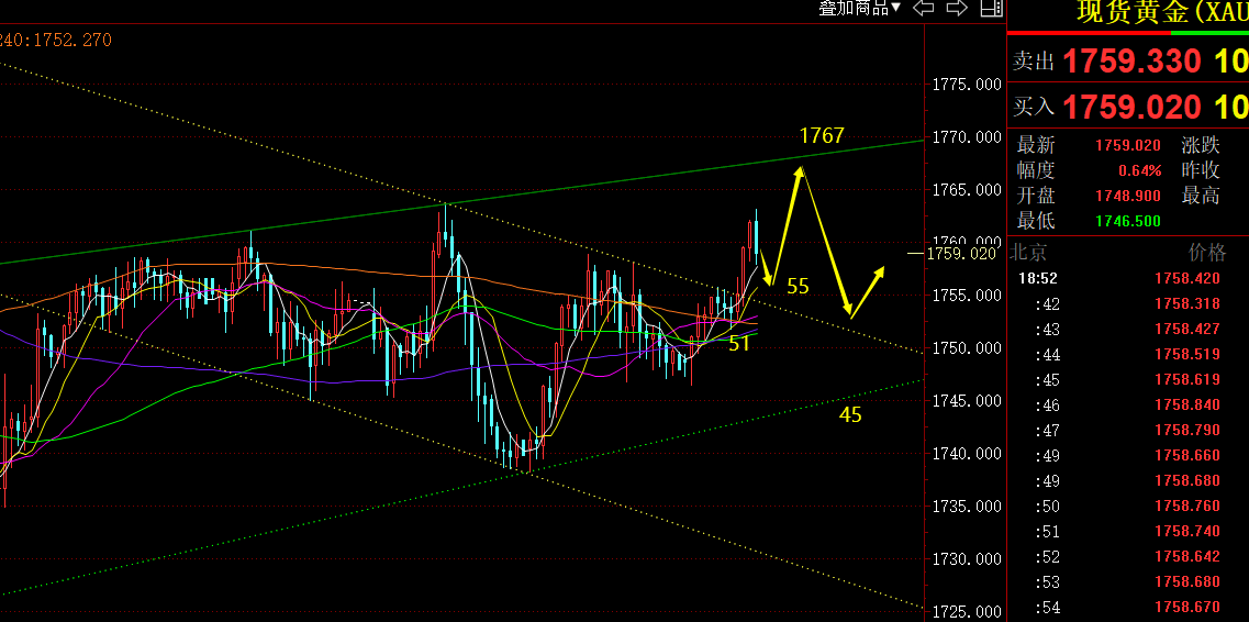 郑氏点银:黄金非农前走不出花样,1750上仍继续震荡 回顾昨日行情走势及出现的技术点: 第一,黄金方面:昨日亚盘循环上行,欧盘突破1755阻力延续一波反弹,而1767下存在通道压制和前期开跌口阻力共振,因此美盘前后给出1767-1755区间内对待,接下来出炉的小非农利多,和GD利空,也促使金价在此区