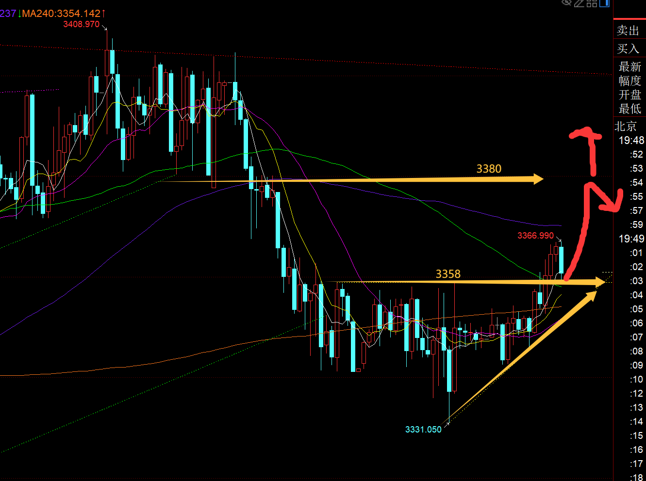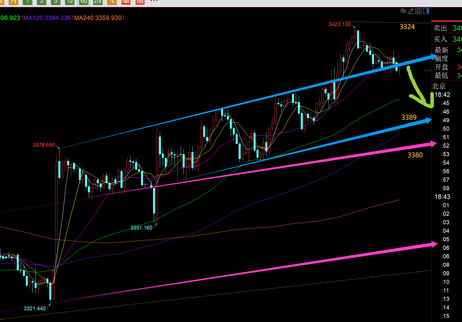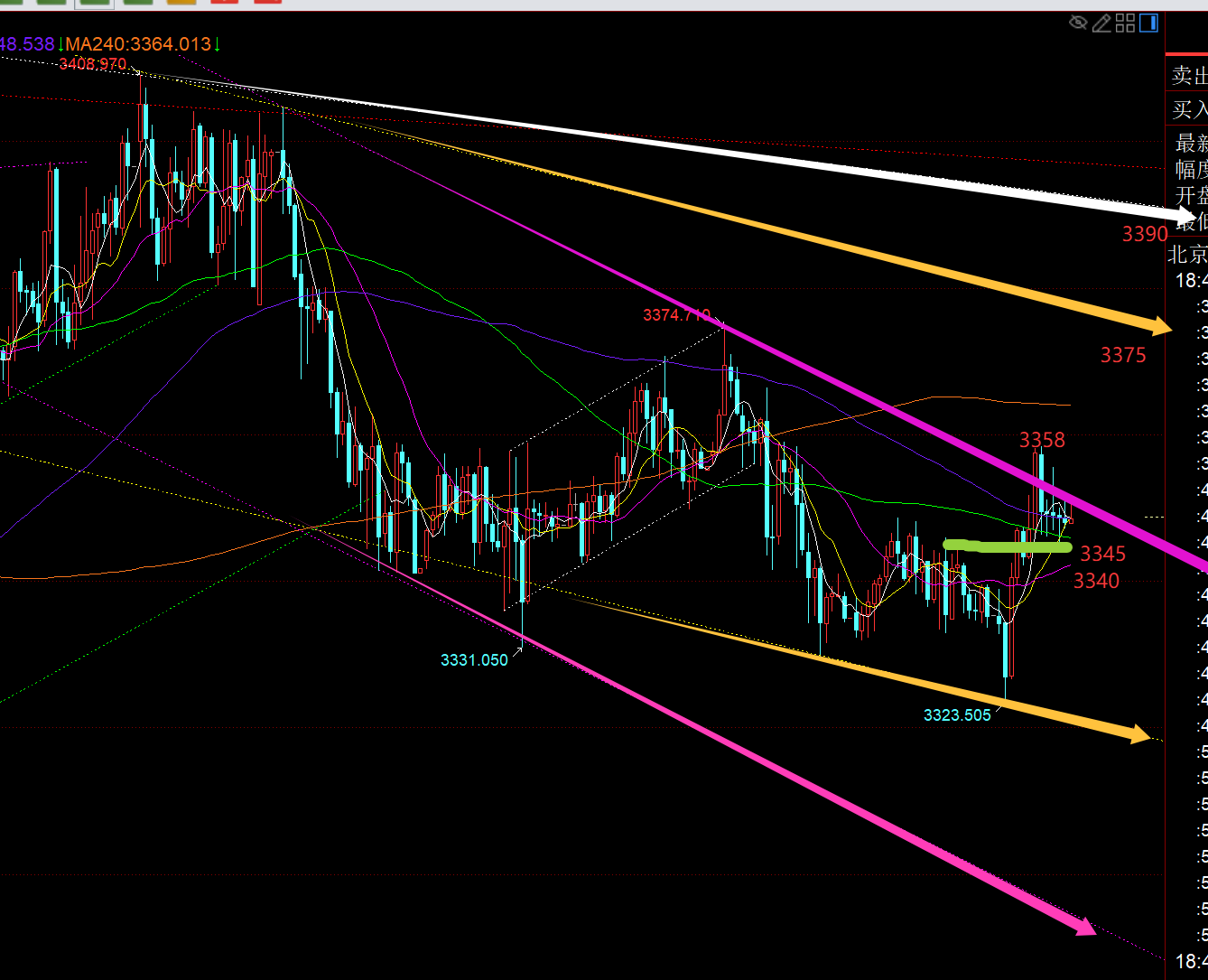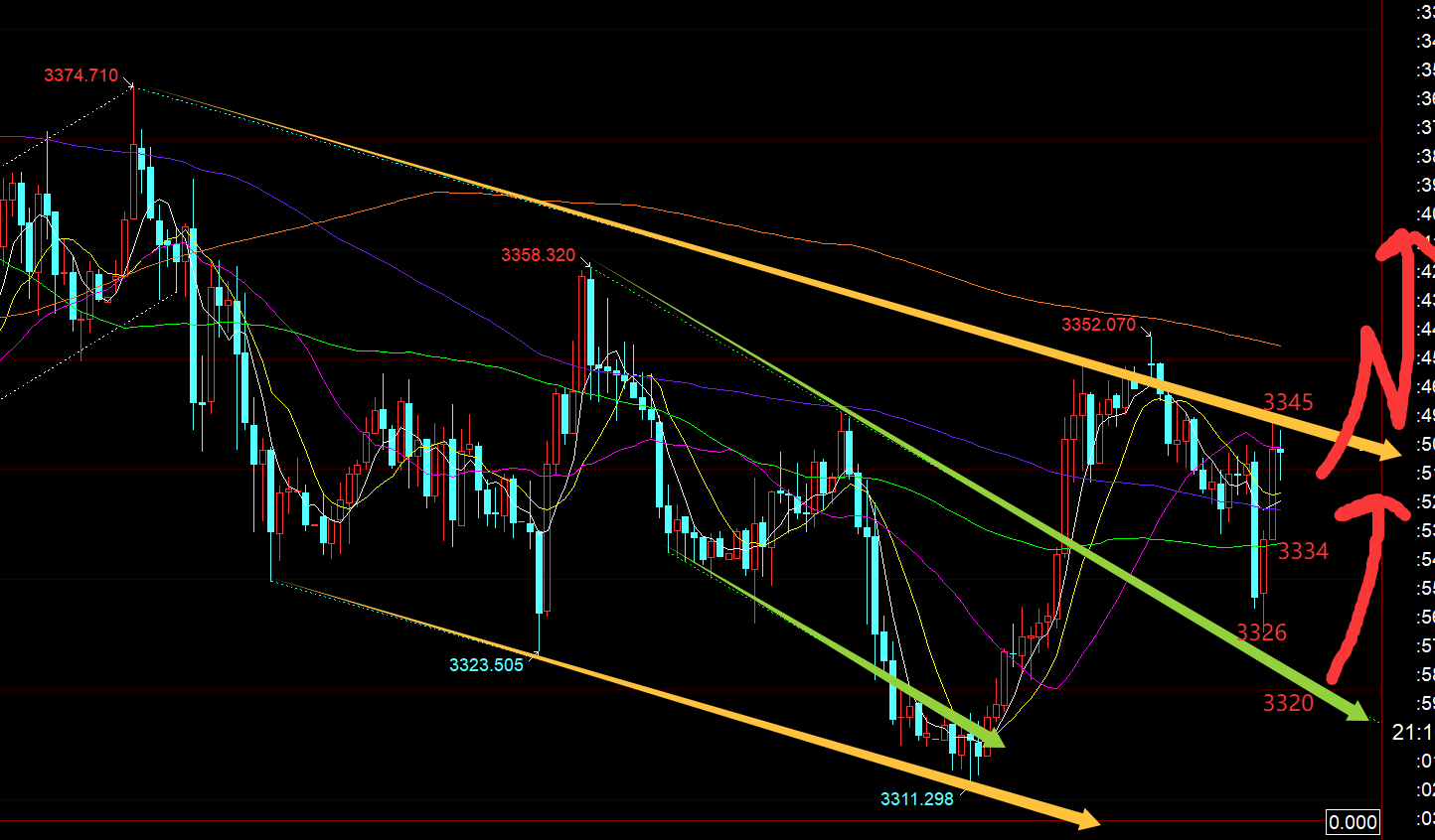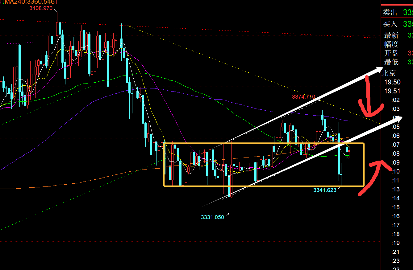 郑氏点银:黄金震荡何时是一个头?今晚关注3355-3325 回顾昨日行情走势及出现的技术点: 第一,黄金方面:昨日算是郁闷至极,一早等3322支撑看涨,价格略差1美金,直接急速探底拉升,眼看着它涨;午后回踩计划3340继续跟随看涨,只回踩3342,又差一点,又眼看着它一根饱满大阳直冲,