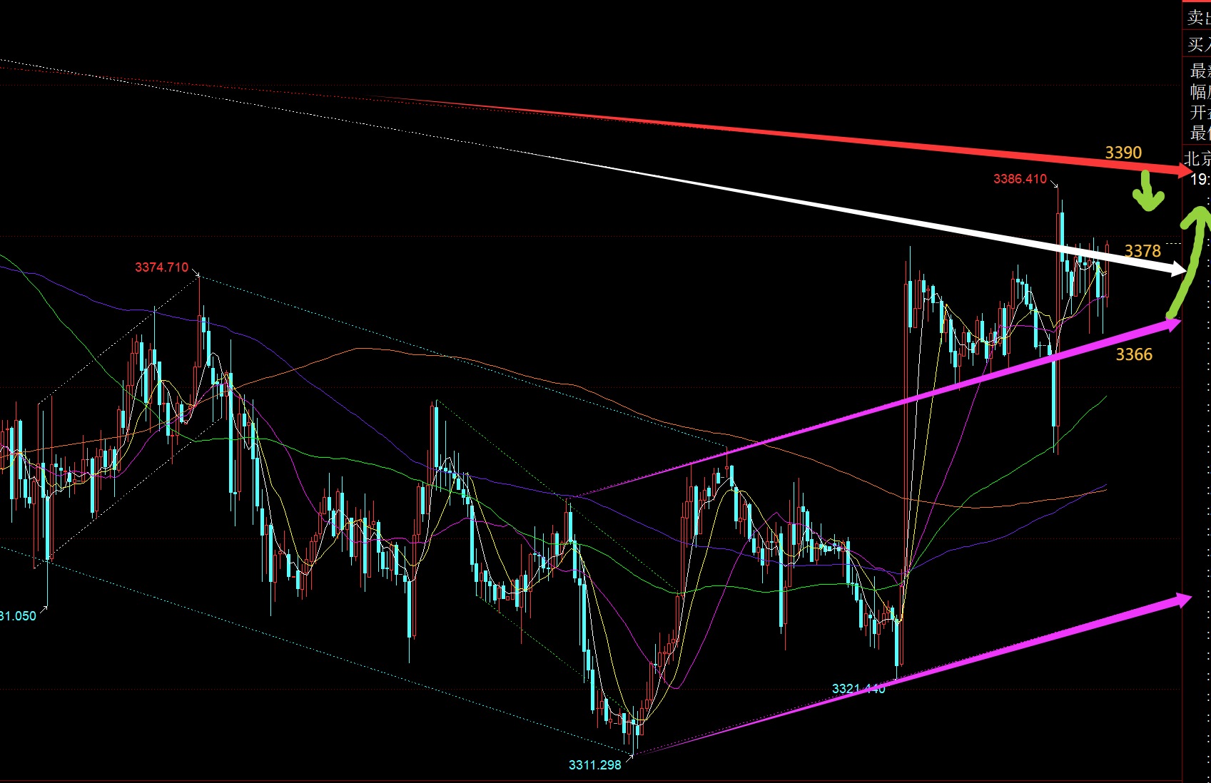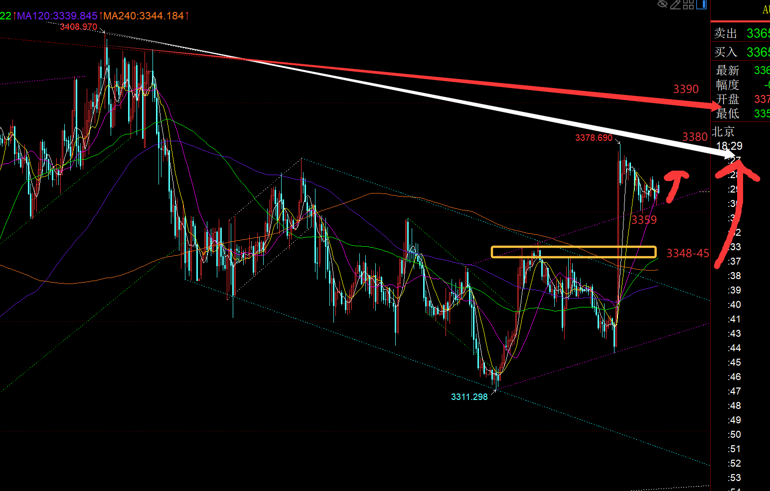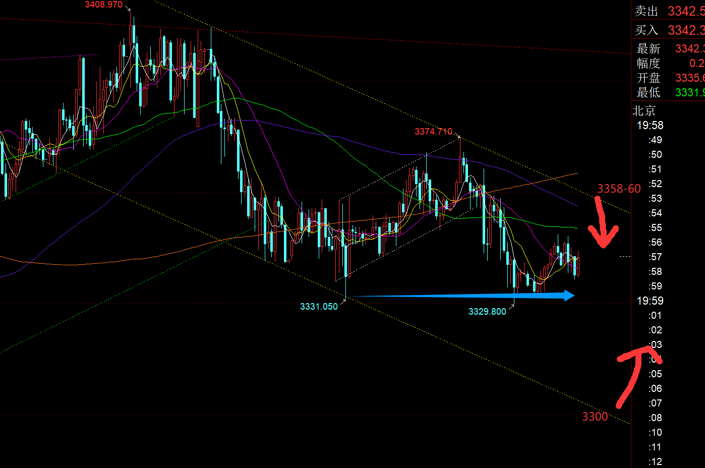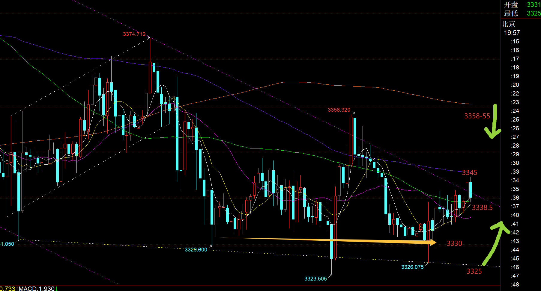 郑氏点银:3300上接近多空拐点,按视频解读,即将多头反补 今日外出,刚赶回家不久,时间有些晚了,也就不具体解读了,简单说几句。 对于昨日行情,黄金只要早间先急跌,一般是试探隔夜低点附近或刺破一下,都是先果断低多的时机;前晚休息之前,也提前强调,3330、3322等依然是有支撑,触及可继续看涨,