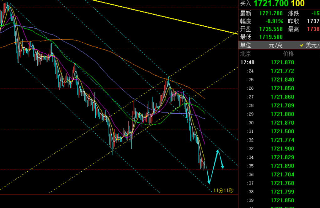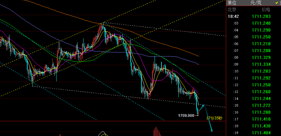 郑氏点银:黄金弱势持续压制,原油有望第三次循环产生 回顾上周五行情走势及出现的技术点: 第一,黄金方面:上周四隔夜连跌走弱失守1760一线关键支撑,周五日内亚欧盘直接震荡慢续跌,而美盘先难得出现小幅急拉,则视为诱多给高空机会,果断通知1755直接提前空,1761风水岭节点下都是做空区域,半夜