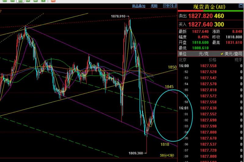 郑氏点银:加息落地临近,黄金先空后多,原油122压制 回顾昨日行情走势及出现的技术点: 第一,黄金方面:昨日早盘先快速续跌一波,则容易延续性差而反抽一波,欧盘试探了凌晨阻力点1833下,未突破站上则展开一波回踩,由于亚盘反抽20美金力度偏大,整体欧盘下跌也失守不了隔夜低点1810,因此判断美盘