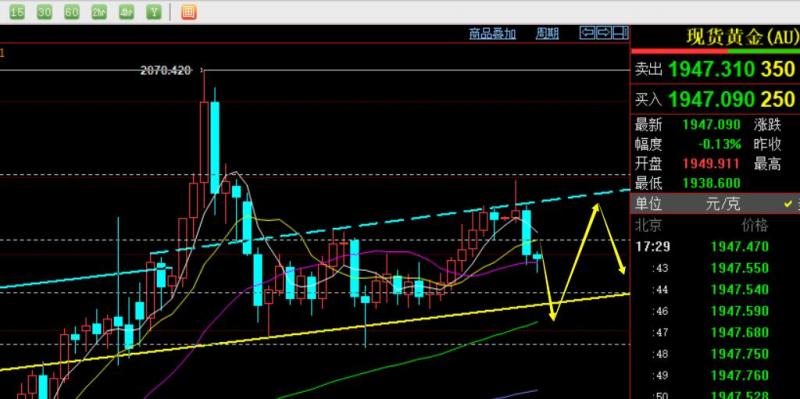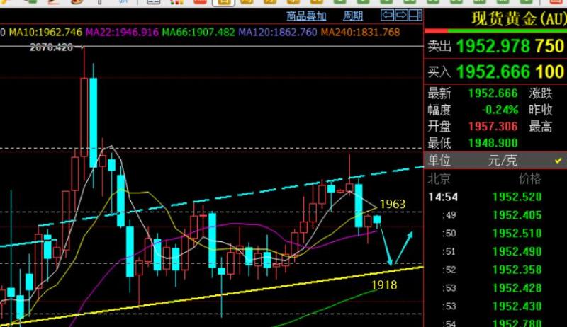 郑氏点银:黄金1960为分界点承压,原油104先看压制 回顾昨日行情走势及出现的技术点: 第一,黄金方面,周二隔夜破位大幅下跌走弱,昨日早盘慢跌直接延续下滑至1940一线,短周期出现一定acd底背驰状态,欧盘终究起到反抽修正作用,连阳上攻给到了1956下做空机会,美盘跌至1944逢低一线,也基本处