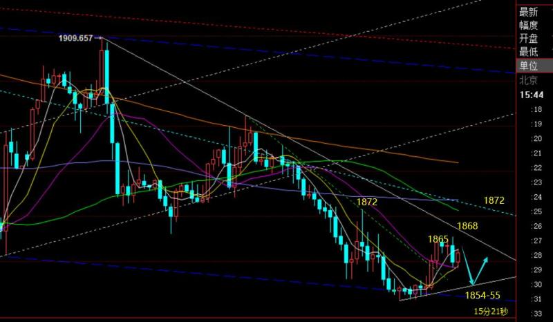 郑氏点银:黄金反弹修正看1852得失,原油重回100看反弹 回顾昨日行情走势及出现的技术点: 第一,黄金方面,周一隔夜持续下挫走弱,昨日早间先反弹,则午后或欧盘前后要跟空一次,选择做空点就是按弱势格局的反弹382分割阻力1865来安排做空,目标1855到位,而由于早间反弹力度也相对可以