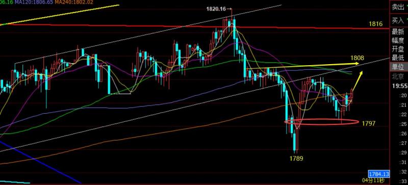 郑氏点银:黄金1789守住前整体日线反弹格局不变,油仍空 回顾昨日行情走势及出现的技术点: 第一,黄金方面,上周五隔夜一路逼空走强,收盘处于最高位1830一线,那么第二日按照正常技术手法,仍回测继续多试探,提出以1820作为强弱风水岭防守,此位置守住,则逼空会延续上涨,会走昨日文章日线解
