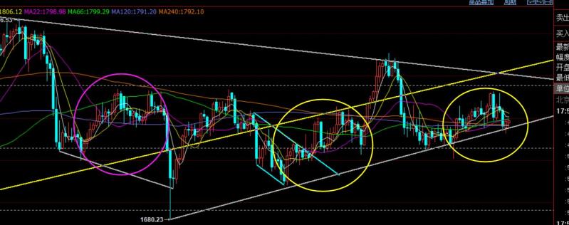 郑氏点银:黄金1797上维持看反弹,原油77上波段空启动 回顾昨日行情走势及出现的技术点: 第一,黄金方面,昨日白盘并未支撑住1800短期支撑以及日线10均线位置,欧盘破位1800后持续压制走弱至最低1789一线,而此位置在晚间视频中指出,处于日线中轨以及1680-1720趋势支撑衍生点以及前期起涨点多重