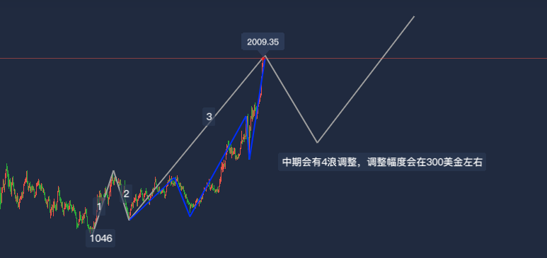 黄金成功拿下2000美元关口,最高给到2026,今天见证了历史,非常幸运,黄金本周开盘黄金一直受到0.236平台支撑,同时前低1959的位置更是难以击破,昨天在文章有说过,目前黄金以1906为起点形成新的一波上行浪结构,今天会涨到哪里,大格局中什么时候会迎来4浪调整下跌,下面我来一 一说来。