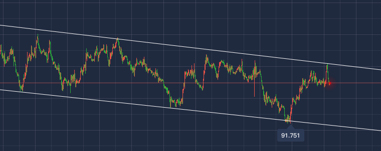 4、美元指数企稳了吗?我的回答是没有,如上图为1小时级别美指K线走势图,从图中应该不难看出美指目前走什么形态,高点与低点一直在下移,周四周五的反弹只是为了走满通道,不是企稳,反转,目前整体下行趋势依然对黄金形成强大的支撑效果,周五非农数据小幅利多,鲍威尔讲话,美股崩盘都没能将美指拉起来,那更别说后面技术面的走势了,总而言之,美指暂时得不到反弹,长期阶段只会将黄金拉上另外一个高度,可能短线会受到一些影响,但不会影响长期趋势。