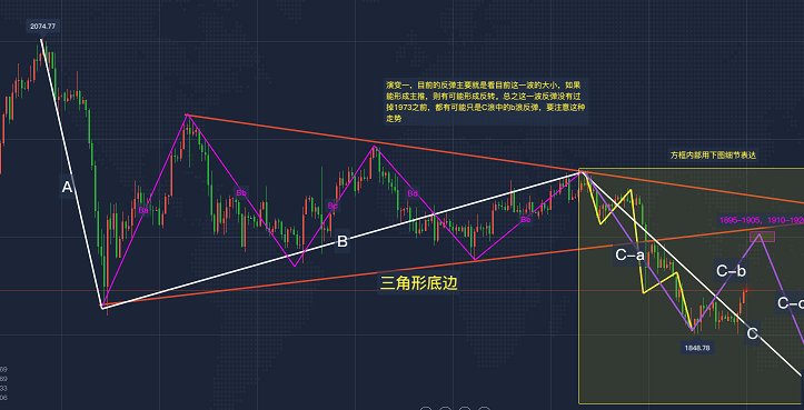 4、个人认为整个技术面走势的阵眼,在于周一低点1936,没有跌破之前,或者说没有靠近之前,我个人仍然秉持图中走法。