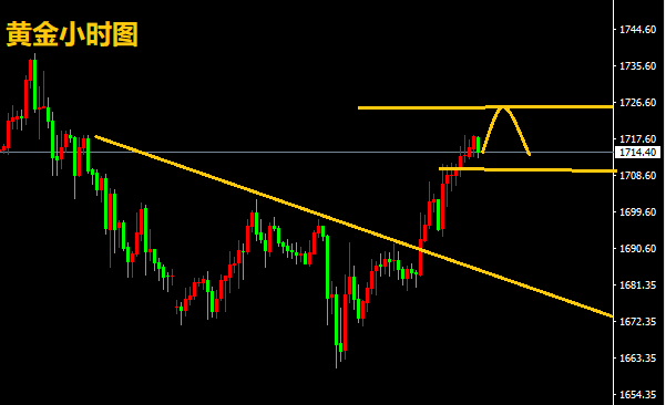 策略一:建议下方若触及1708-1710附近多单进场,止损放在1704,目标点位附近1720-1722