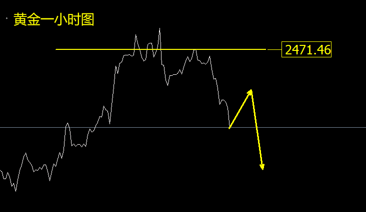 黄金阶段性高点出现!日内反弹看调整! 本轮多头涨幅自2300关口开始,自昨日晚间高点2483,整体涨幅超过180美金!随后展开调整,跌破2465后一小时形态见顶!这意味着,多头在单边上涨超过180美金后,转入调整格局。 当然,日线中期趋势依然看涨,所以我的用词是短期看调整,不是趋势见顶!