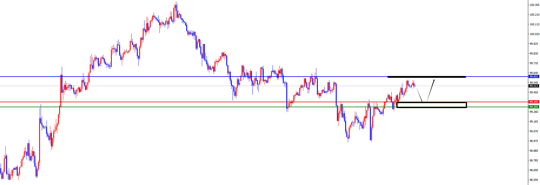 美元指数 月线(长线空)阻力:102.10 周线(中线多)支撑:98.50 日线(关注日线阻力得失)阻力:99.60 四小时(短期) 美指短线于四小时支撑及日线阻力区间震荡 关键分水岭99.30-35区间,价格没有出现反转信号之前维持多 美元兑日元(UDJY)