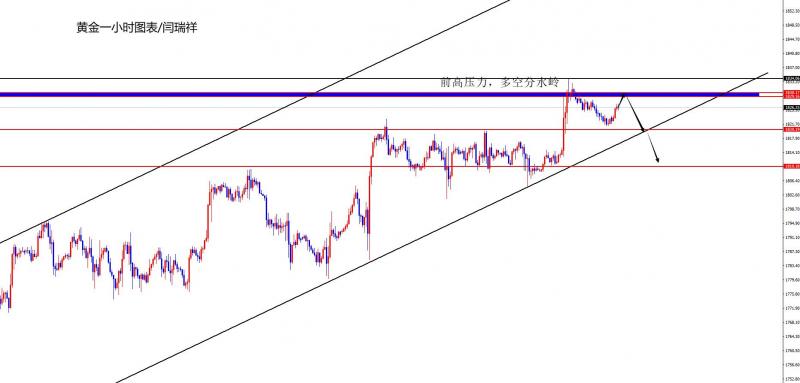 黄金方面,周一黄金价格总体呈现下跌的状态,当日价格最低下跌至1821.31位置,最高于1830.21位置,收盘于1823.1位置。回顾昨日黄金市场表现,早间开盘后价格短线承压下跌,周五晚间价格最高触及至关键阻力位置1834区域阻力。昨日价格没有进行继续延续多头,而是承压,日线上昨日收取阴线,目前针对黄金总体看,我们需要重点关注1835位置得失,在此位置没有破位之前我们暂时先继续逢高空,只有破位后才考虑多,今日方面,我们暂时重点关注1829-30区间阻力,价格到位后空,下方重点关注1820区域支撑,此位置是目前上升趋势线下边缘,如若此位置破位还将测试1810区域,目前我们这按时按照1835-1810区间震荡对待。