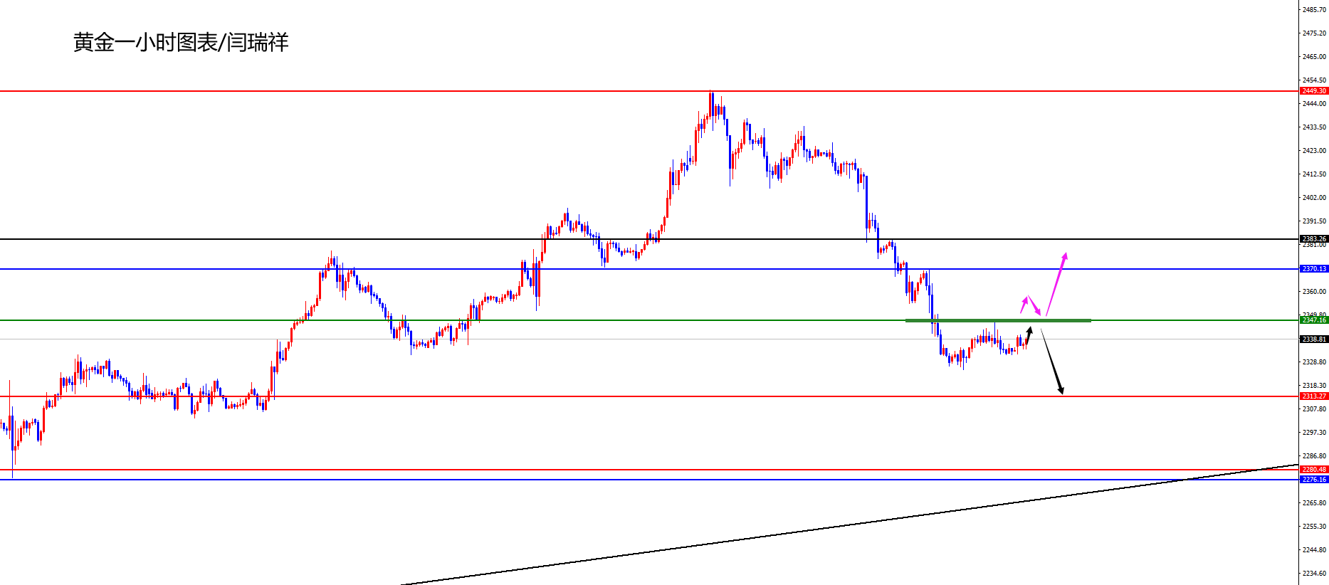 黄金突破2347位置回踩多,目标2365-2380